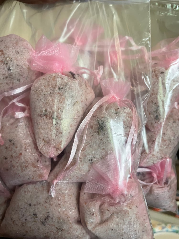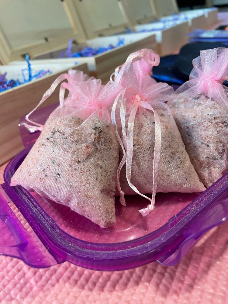 • Epsom Salt & Pink Himalayan Salt – rich in minerals to relax sore muscles
